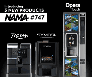 Advertisement | | Evoca Group is proud to present its latest revolutionary brewers. The Royal, a bold and stylish Italian espresso machine with muscles of steel. The Symbol, a groundbreaking modular concept brewer, tailored to your every need. The Opera Touch, an incredible standalone vending machine, built with the simplicity of management in mind. Those great performers will astound you with their brilliant features. Discover them, and more, at NAMA, booth #747. |